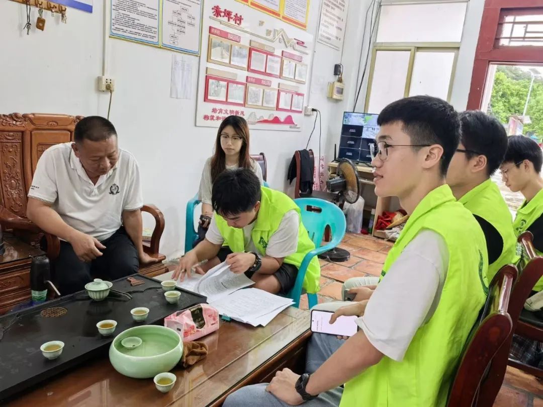 突击队深入雷岭镇荔枝种植基地,跟着果农学修剪、施肥等田间管理技巧,积累第一手种植知识;又走访当地合作社、村委会和农户,了解荔枝产销模式,全方位梳理荔枝产业从种植到销售的完整链条,为帮扶工作打下基础。在走访济美、麻埔、南溪、松林等村落过程中,突击队也发现当地荔枝产业面临“丰产不丰收”的困境,种植技术与品质上的问题同样突出,桂味荔枝焦核率的不稳定、农药施用不当导致卖相差、鸭头绿比例高都直接影响售价。这种“荔枝伤农”的现象——种植成本高,售价却上不去,让农户倍感无奈。针对收集的问题,团队成员迅速汇总整理,发挥专业智慧提出建议,并反馈给指导老师寻求支持。